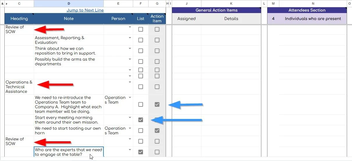 • Our Google Sheets template organizes meetings and can be used in many ways. You can customize it to list agenda items, track actions, and record minutes.